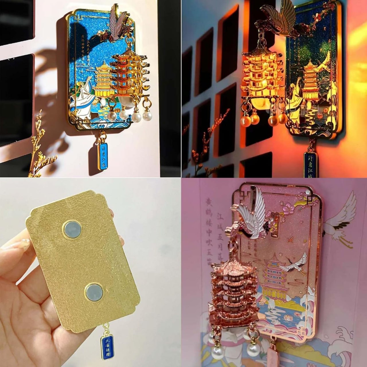 - 3D Multi-Layered Metal: Crafted with precision, this Decorative Led Refrigerator Sticker features stunning, raised detailing of traditional pavilions, graceful cranes, and blossoming branches that pop right off the surface.